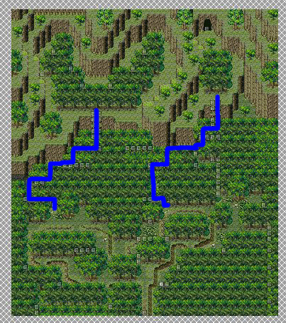 マップは、かなり凶悪で、シャーマンかシーフがいないと隠された道(抜け道)を発見するのが難しく、隠された道にも段差で通行できない場所などがあります。隠された道については地面をよく見てもらえれば、なんとなく、わかるようにしてあります。