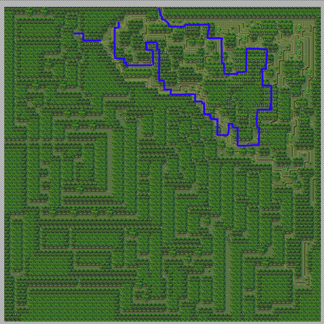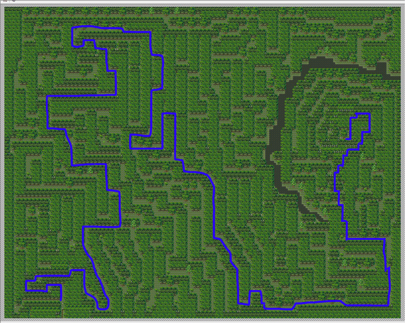 カオヤンの洞窟へは最初のマップから北に向かうことになります。対象マップは以下になります。青いラインあたりが、隠し道になっています。
